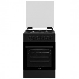 Cuisinière VEDETTE - Largeur : 60cm - Nombre de Feux : 4 Feux - Volume de la cavité : 88 Litres - Commande Mécanique - Mode de cuisson Ventilé - Couvercle en Verre - Porte Double vitrage amovibles - Grille Émail mat - Allumage Intégré - Lampe Halogène : 15 W - Sécurité Thermocouple - Couleur Noir - Garantie 2ans