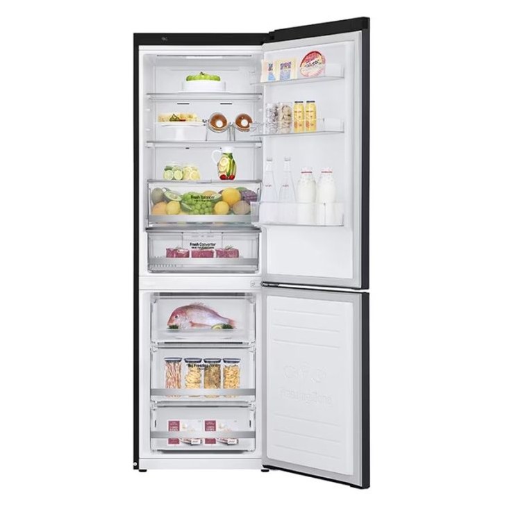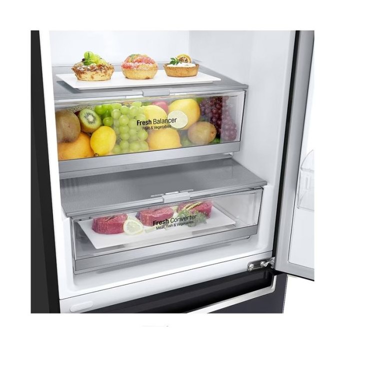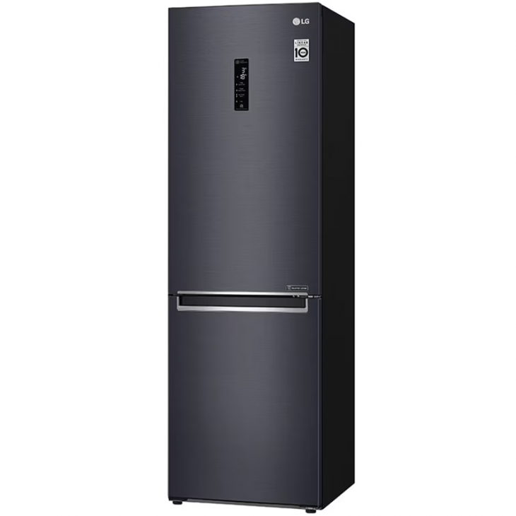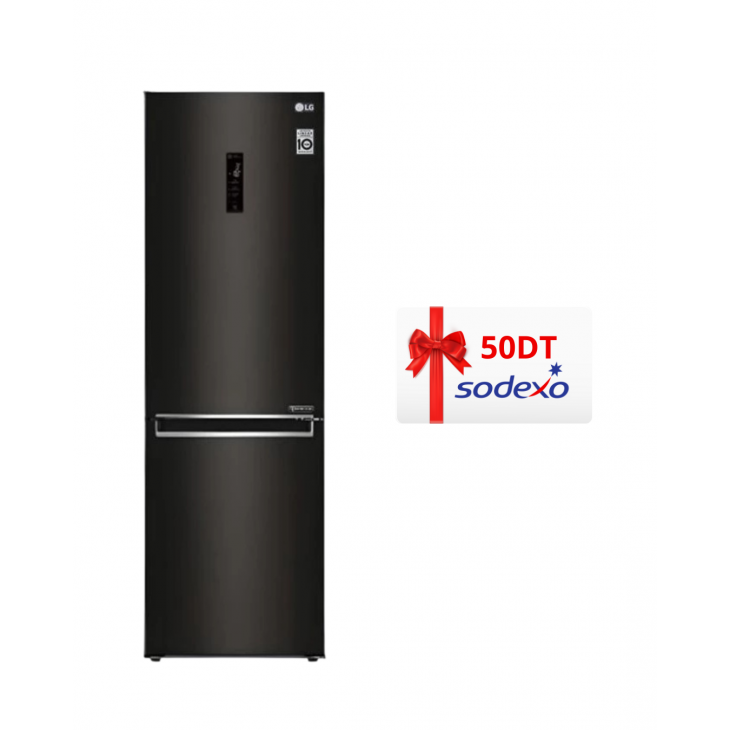 Réfrigérateur Combiné LG - 2 ports - Système de refroidissement: NoFrost - Capacité net total: 341 Litres - Capacité net réfrigérateur: 234 Litres - Capacité net congélateur: 107 Litres - Capacité brut total: 374 Litres - Capacité brut réfrigérateur: 247 Litres - Capacité brut congélateur: 127 Litres - Classe énergétique: A+++ - Éclairage LED - Avec Afficheur - LINEAR Cooling™ - Door Cooling+ - Smart Diagnosis™ - Inverter - Multi-Air Flow - Fresh Zone - Express Cooling - Grande boîte de congélation - Dimensions: L x H x P : 59.5 x 186 x 68.2 cm - Couleur: Noir Mat - Garantie: 3 ans (10 ans sur moteur)
