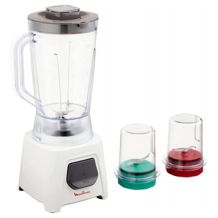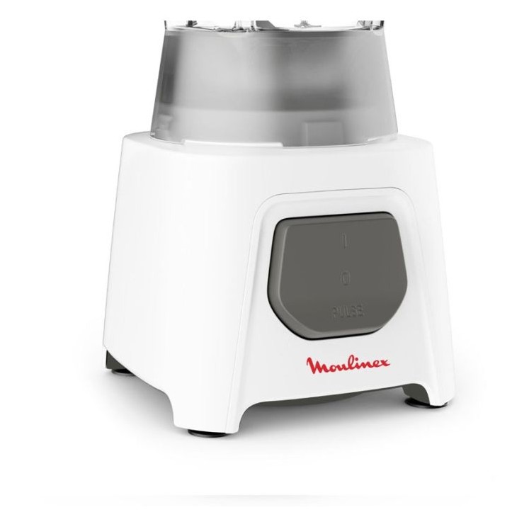 Blender MOULINEX - Puissance Moteur: 450 Watts - Capacité du Bol: 1.5 Litres - Nombre de vitesse: 1 Vitesse + Pulse - Anti-dérapants - Interrupteur de verrouillage de sécurité - Lames: en acier inoxydable - Rangement du cordon - Matériau: Corps plastique - Bol plastique - Système de nettoyage facile - Pièces compatibles au lave-vaisselle - Avec 2 moulins - Couleur: Blanc - Garantie: 1 an