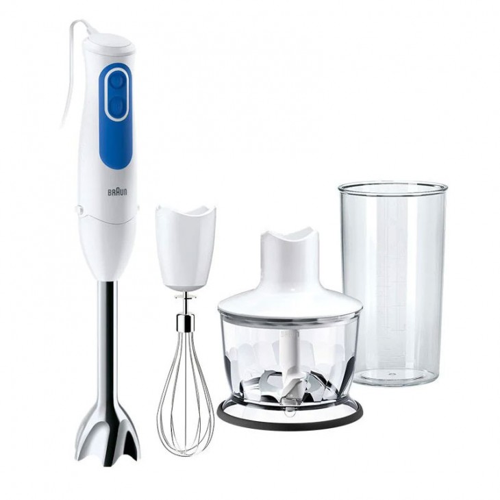 Mixeur Plongeant BRAUN MQ3035 - Puissance: 700 Watts - Capacité du hachoir: 500 ml - Verre doseur: 600 ml - Nombre de vitesse: 2 vitesses avec bouton à simple pression - Fouet et Lames en acier inoxydable ultra résistant - Système EasyClick - Technologie PowerBell: SPLASHControl + lame de broyage supplémentaire pour un mixage plus efficace - Poignée antidérapante - Longueur du cordon: 1.2 m - Couleur: Blanc - Garantie: 2 ans