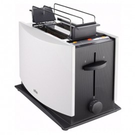 Grille Pain BRAUN HT450 - Puissance: 1000W - Capacité de grille-pain: 2 tranches -Centrage automatique du pain - Fonction d'annulation - Fonction de dégivrage - Fonction de réchauffage - Ascenseur à pain - Boîtier Cool Touch - Rangement du cordon - Ramasse-miettes amovible - Fixation amovible du chauffe-pain - Arrêt automatique anti-bourrage - Couleur: Blanc - Garantie: 1 an