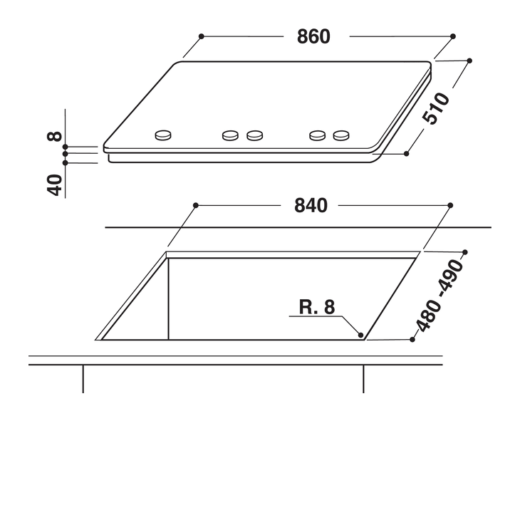 PLAQUE WHIRLPOOL EN VERRE TREMPE 5 FEUX