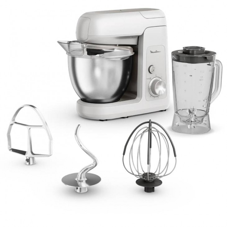 Robot Pétrin MOULINEX - Puissance: 1100 Watts - Capacité du bol: 4.6 litres - Matériel de bol: Acier inoxydable - Nombre de vitesses: 8 et Fonction pulse - Capacité du blender: 1,25 litres - Mouvement planétaire - Préparations homogènes - Accessoires compatibles au lave-vaisselle - Couvercle anti-éclaboussures - Accessoires: Fouet flexible, Fouet, Crochet pétrisseur et Mixer - Design robuste - Couleur: Gris - Garantie: 1 an